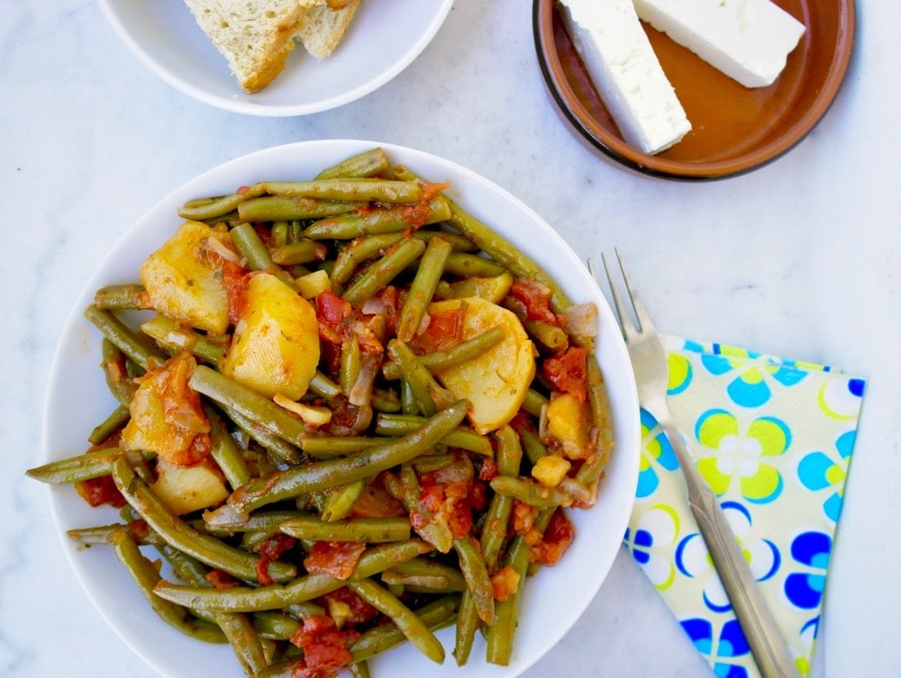 Well they cook their vegetables. Yes they eat salads and have plenty of vegetarian appetizers, but the vegetable based main course is what really sets them apart from other cultures. Most Greeks consume vegetables as a main dish 2-3 times a week. When I say cook, I don’t mean a plate of boring steamed vegetables with a lump of butter or melted cheese. These dishes are a combination of vegetables, herbs, tomatoes and olive oil, delicious and healthy. Common vegetables used are green beans, peas, eggplant, leek, artichoke, cauliflower and okra. Or they may eat beans (legumes) cooked with oil, onions and tomato. One serving is a large plate, which is about 3 servings of vegetables. Not only do you eat plenty of vegetables, but you also eat “difficult” vegetables such as artichokes and okra that you would otherwise not eat. One of my favorite dishes as a child was -believe it or not- a big plate of okra cooked in tomato sauce with a chunk of feta.