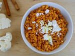 I have to admit that the idea of cauliflower rice did not appeal to me, it just seemed bland, in addition to that, I am not a fan of masquerading one food as another. I love rice and pasta, and they have their place in the mediterranean diet, I don’t need to stop eating them, they are just fine. However, this “rice” was interesting to me because it was a different way of preparing vegetables, but it needed the Greek touch; What if I cooked it with some onion, tomato paste and a few spices? Now that sounds good. So here it is. Basically a different version of the traditional Greek braised cauliflower. With a sprinkle of crumbled feta and a drizzle of olive oil, this was exactly how I imagined it: moist, flavorful and healthy.