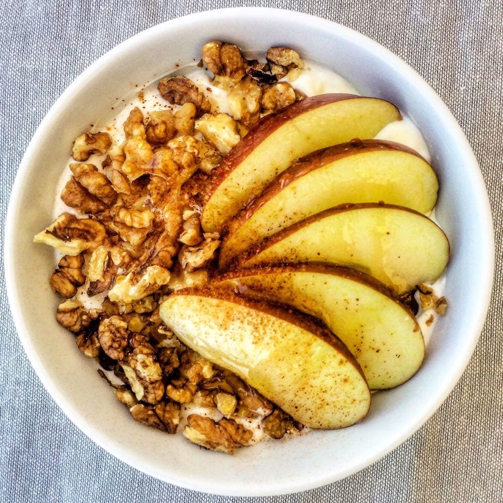 I often see meal plans that include breakfasts that involve cooking, mine don’t, with the exception of an egg here and there. Yes, it would be nice to have a hot breakfast every day but it is not realistic or necessary. The Greek/Mediterranean diet generally did not include a huge heavy breakfast unless you were working in the fields. For most of us a simple breakfast of toasted whole grain bread with a bit of tahini and honey (you can swap with natural peanut butter) is more than enough. Another idea is Greek yogurt with fruit or with honey and walnuts or a simple but classic choice is bread and cheese.