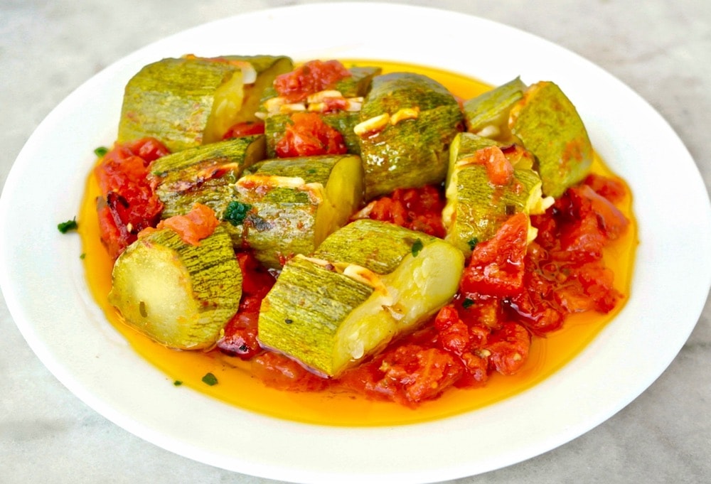Roasted Zucchini with Garlic and Tomato-A Recipe from Crete