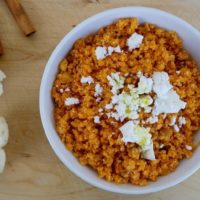 A flavorful Greek-Mediterranean take on cauliflower rice with tomato, a hint of spice and tangy feta cheese