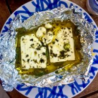 • Place the feta in a large piece of aluminum foil, scrunch up the sides forming a little parcel.